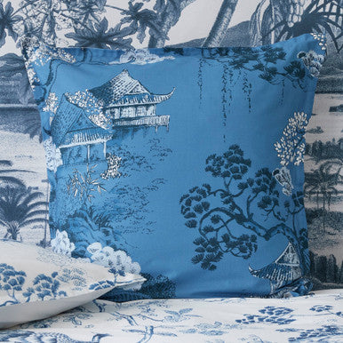 The Euro pillowcase has a similar Chinoiserie pattern to what can be seen in the matching quilt set but with a darker blue contrasting background whilst the reverse is the same crisp white like the rest of the quilt set. Euro pillowcases are sold separately, each pack contains one 65x65cm pillowcase, so order two when you have a pair of euro pillows to cover. Like the standard pillowcases included in the matching quilt cover set, the euro pillowcase is also finished with an envelope closure. Quilt cover sets and coordinating cushions sold separately.