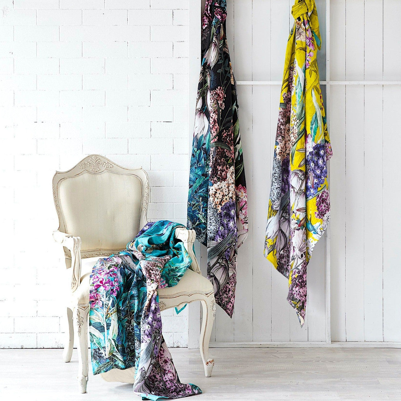 This is our gold version, they're available in three alternative background colours: Black, Teal and Gold where a hand-illustrated design inspired by antique botanical drawings bursts forth from the bold background colour. These throws effortlessly coordinate with the Spring Garden range of velvet cushions that are available in the same three colours as the throws as well as the Spring Garden Quilt Cover Set.