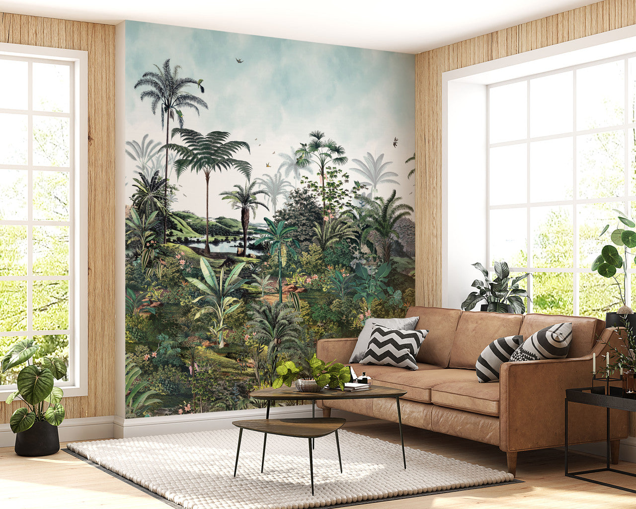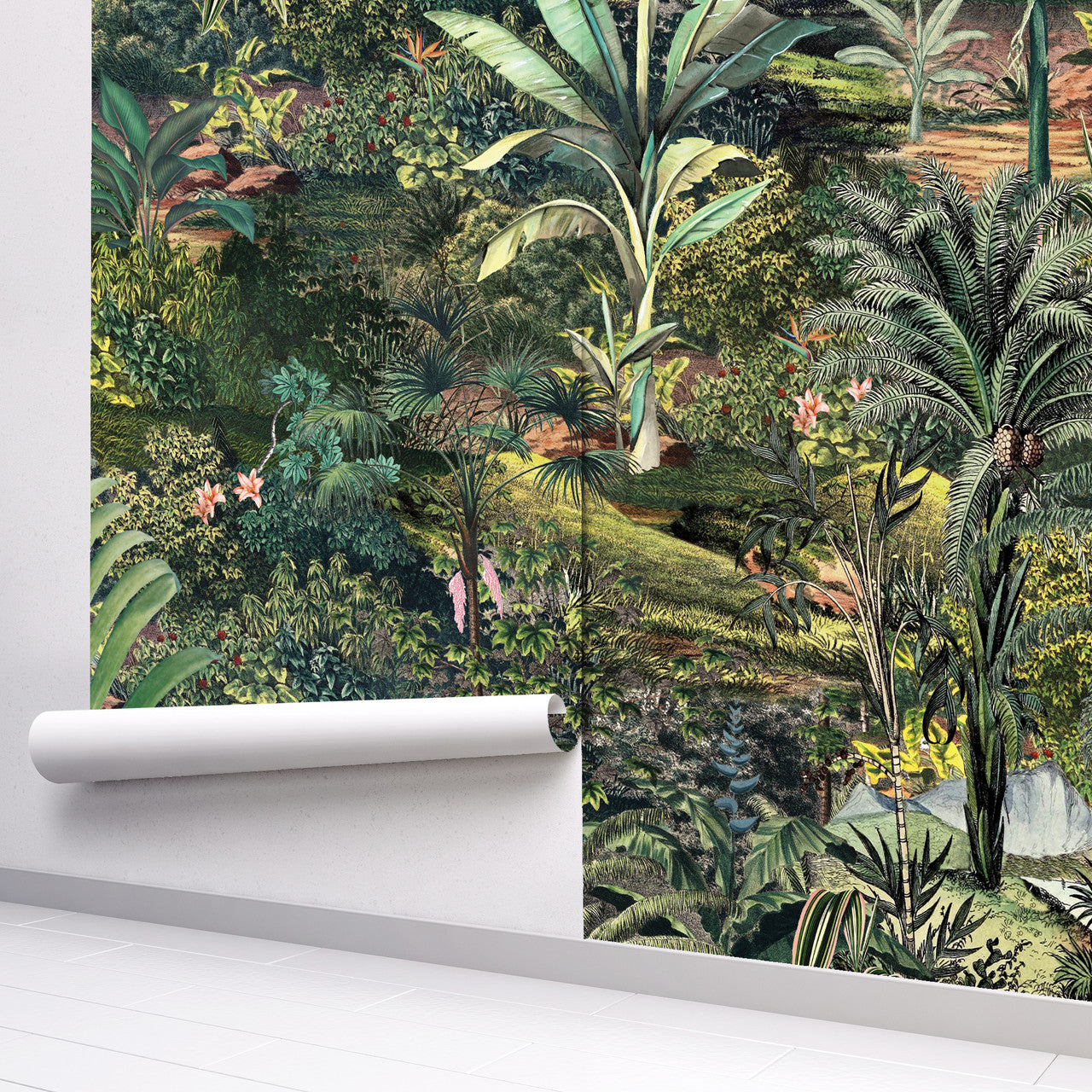 Transform your space with Arcadia, a hand-painted printed wallpaper featuring a stunning tropical landscape. This exquisite design captures the vibrant beauty of nature, blending lush greenery and exotic hues to bring the outdoors inside. Perfect for any room, Arcadia creates a serene, inviting atmosphere with its intricate details and artisanal charm.