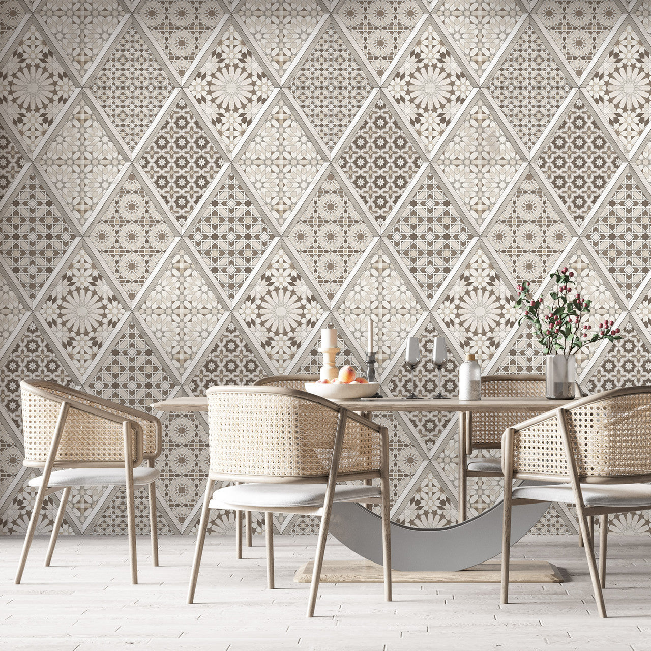 Bring a unique, luxurious flair to your home decor with Marrakesh Wallpaper. Featuring intricate arabesque tile patterns in a variety of rich colors, this wallpaper will instantly transform any room into a beautiful, exotic oasis. Add a touch of elegance and cultural sophistication to your living space with Marrakesh Wallpaper.