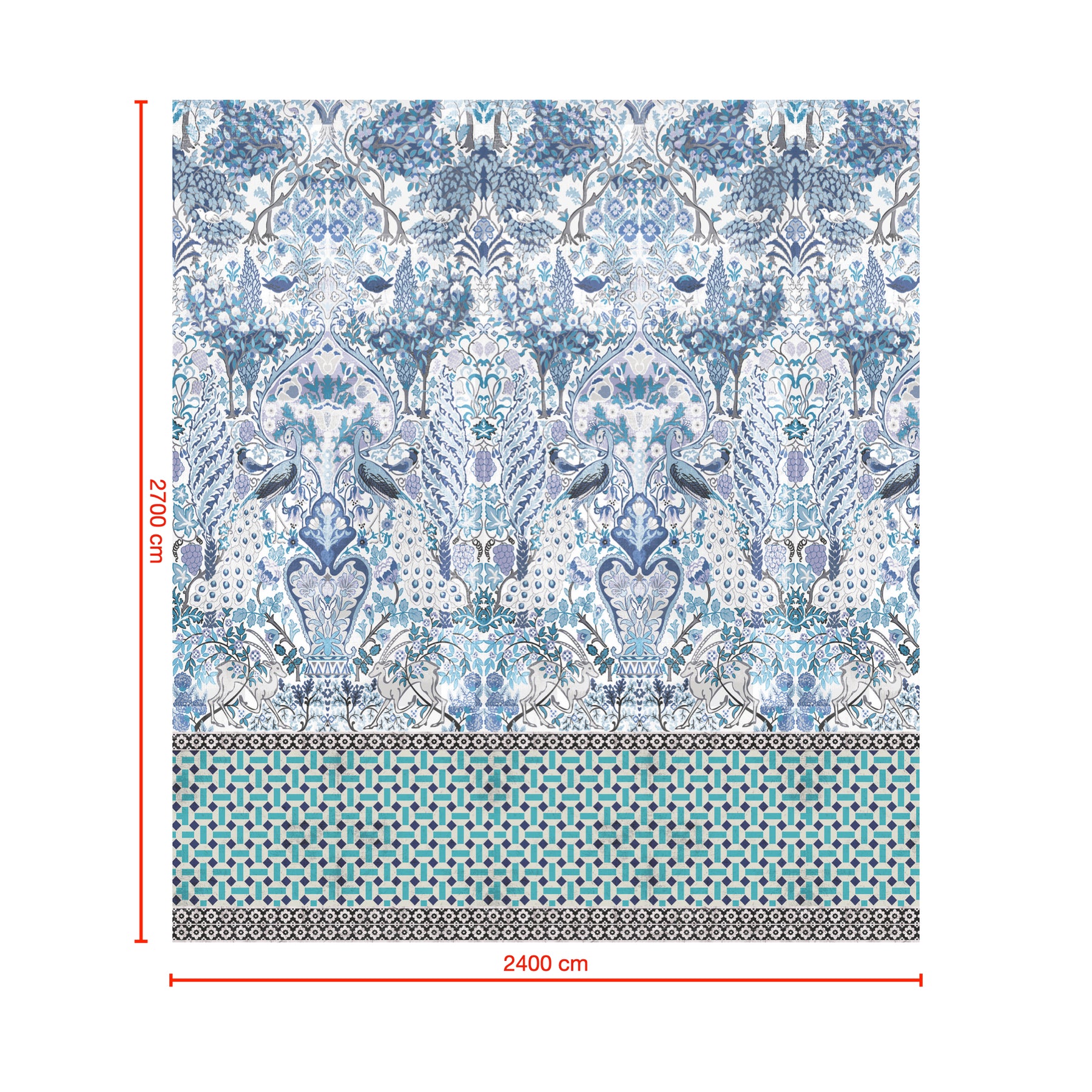 This version of our Parisa Wallpaper adds a tile pattern wainscotting panel to the bottom of the design and replicates the wallpaper that can be seen in the background of the photos of our Parisa Quilt Cover Sets. This classic design is enhanced by its distressed effect which resembles the look of an antique-carpet, giving it a timeless sophistication that is sure to elevate any room