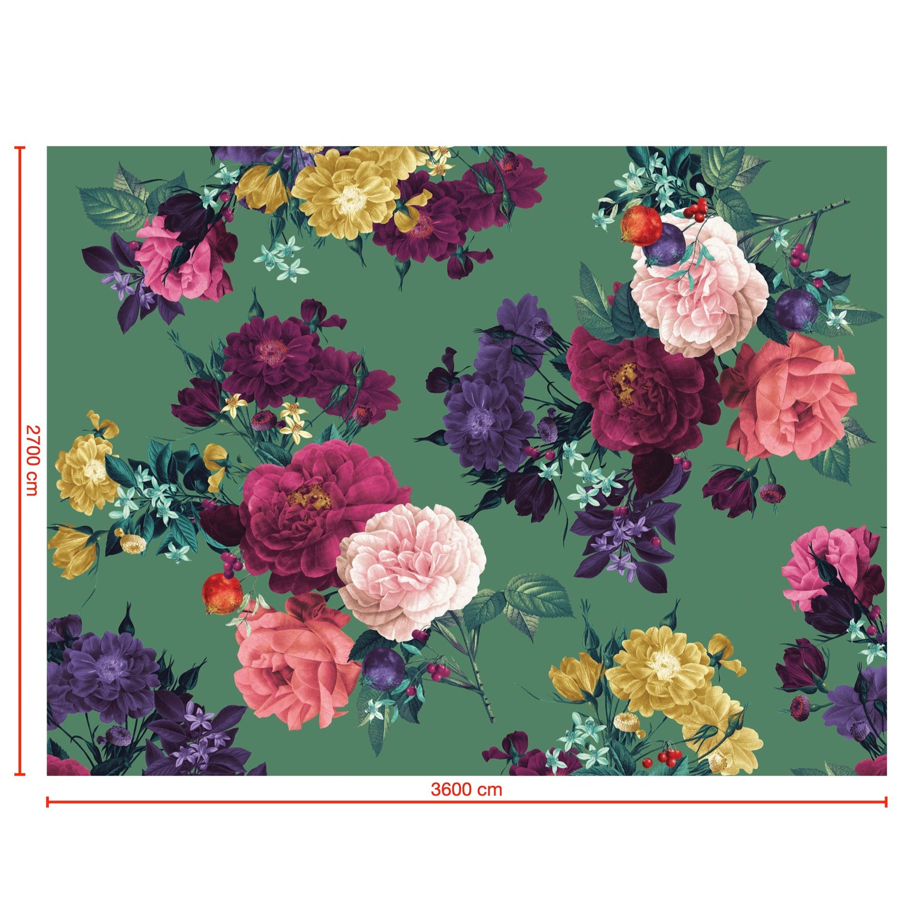 Bring luxury to your walls with this opulent Rosanna wallpaper featuring a stunning mix of oversized vintage roses, delicate foliage, and vibrant spring blooms. Create a stylish backdrop for your home with this timelessly elegant design.
