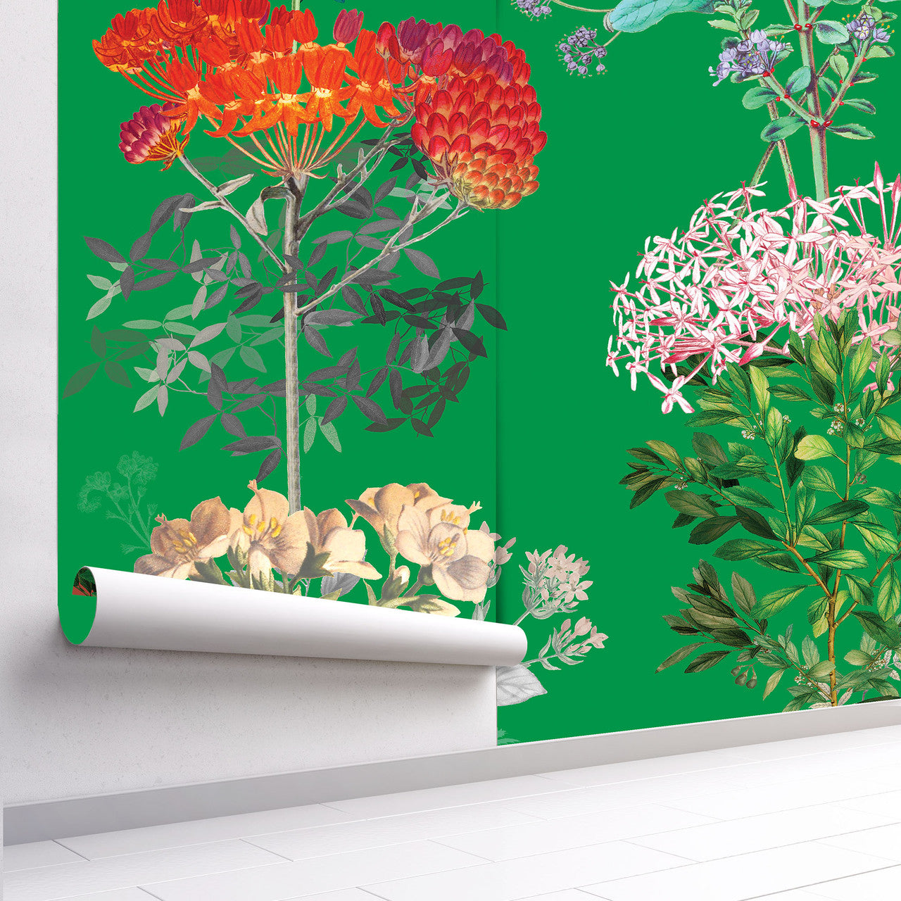 Adorn your walls with the luxurious Kalina Wallpaper, featuring vibrant florals, vivid colour, and illustrations in atraditional botanical style reimagined. Transform any room with this eye-catching, sophisticated design guaranteed to add a touch of elegance and exclusivity to your home.