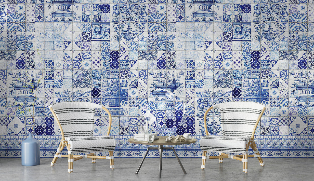Transform your walls with Madrid Wallpaper! Inspired by the beauty of old Spanish tiles, this wallpaper adds a touch of history and charm to any room. Say "hasta la vista" to boring walls and "hola" to a stylish new look.