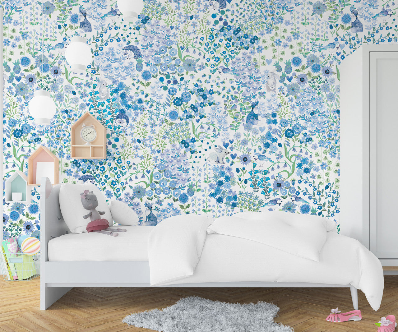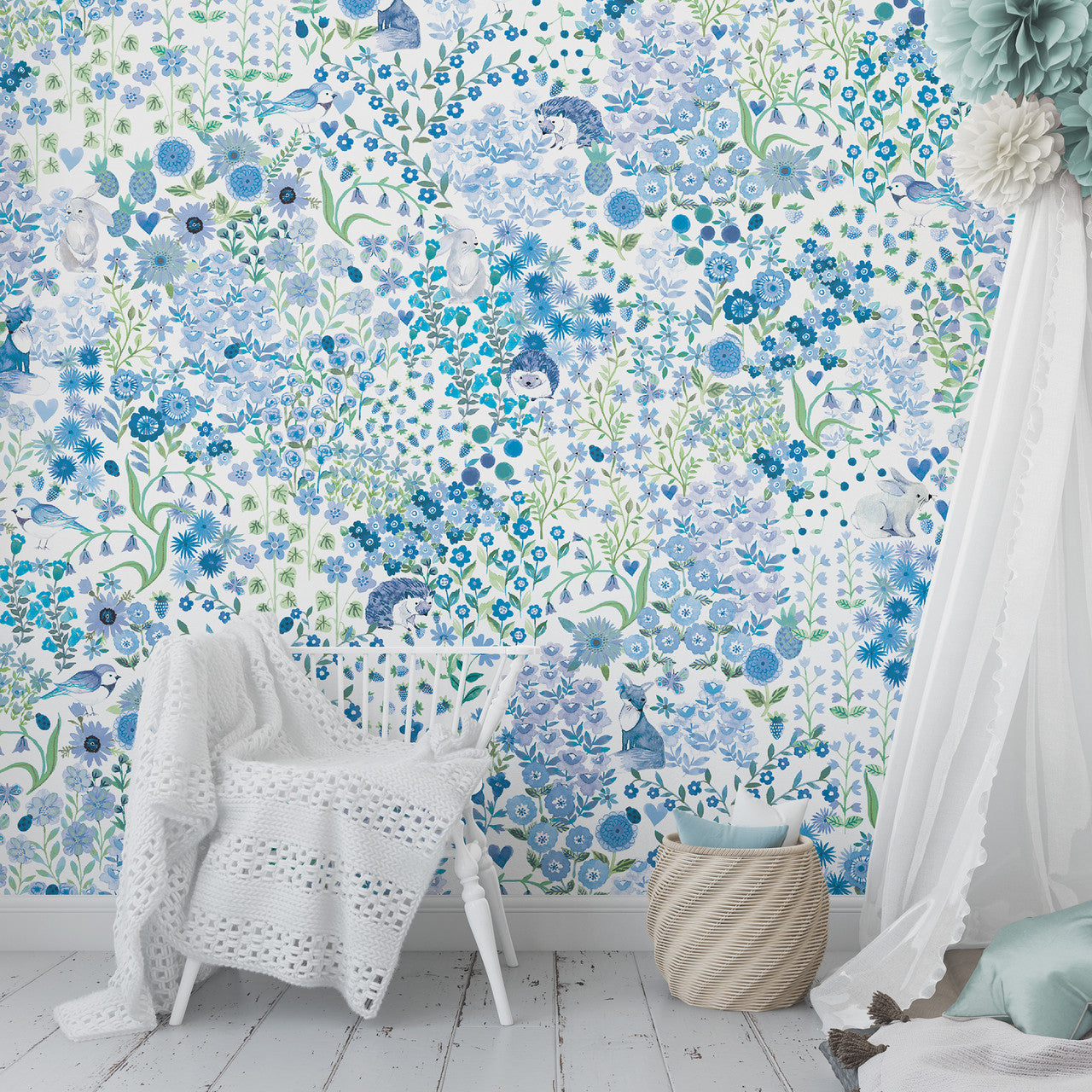 Wildflower Friends Wallpaper - French Blue